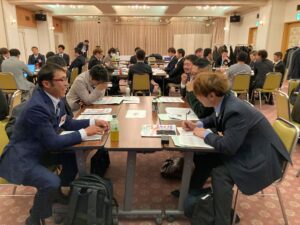 交流会後半では、6グループに分かれてグループディスカッションを実施し、それぞれの活動内容や課題について活発な意見交換が行われました。各グループからは多くの意見が出される中、共通の課題として「青年部員の増強」が挙げられ、入部促進に向けた具体的な方策や青年部の魅力をどのように発信していくかについて議論が交わされました。