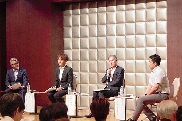 第2部では、阿部知事の他、中村嘉孝県青連副会長、重盛秀敏壮青年部長もパネリストとして登壇し、ファシリテーターの北城貴英壮青年部副部長の進行のもとトークセッションが繰り広げられました。
